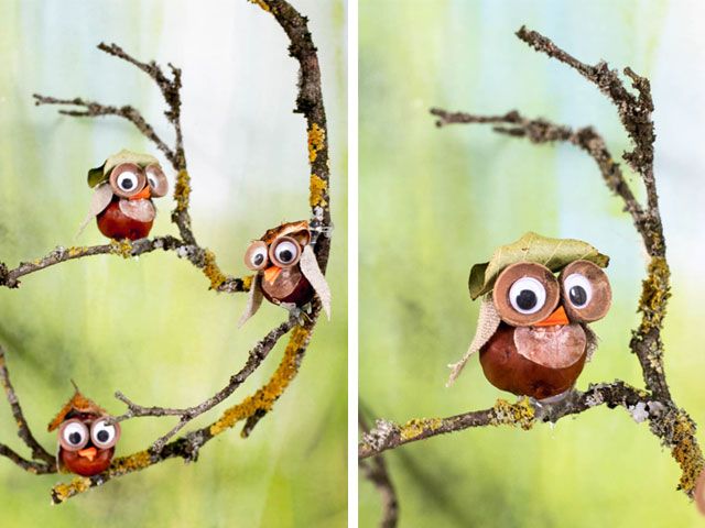 Eulen Basteln Mit Kastanien Meinefamilie At Kastanien Basteln Herbstbastelprojekte Eulen Basteln
